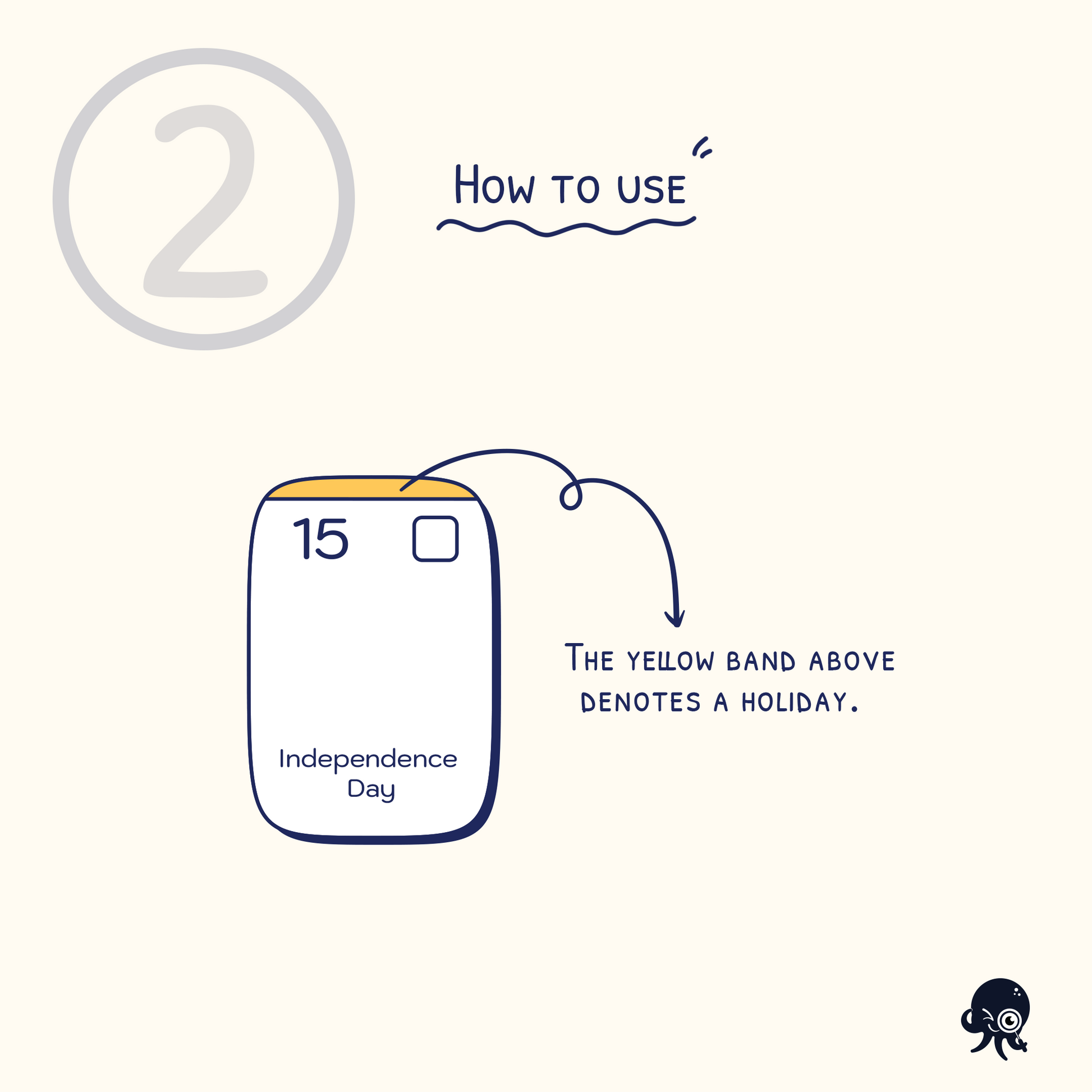 ๐ Holiday Highlights: Spot important holidays at a glance, thanks to bright yellow markers.