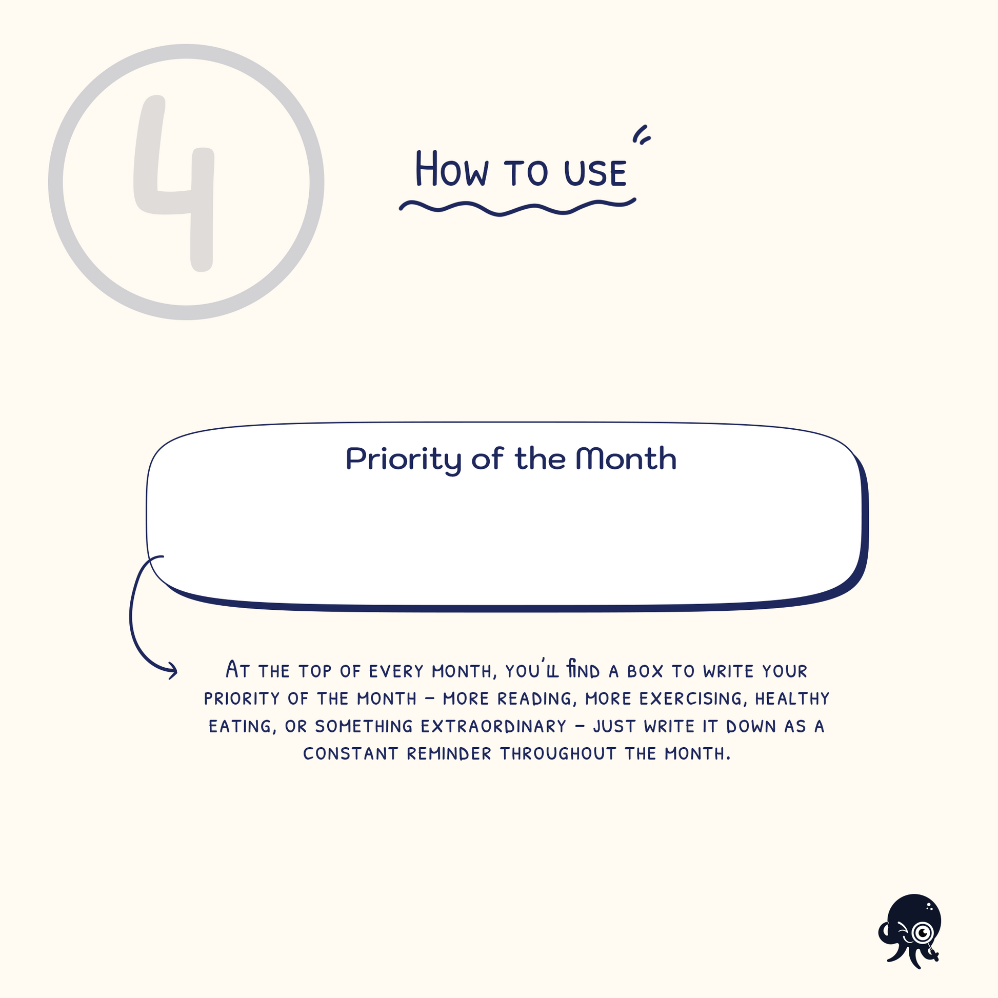 ๐ Monthly Priorities: Set a priority for each month โ be it more reading, healthier eating, or mastering that new hobby. Constant motivation right in front of you!